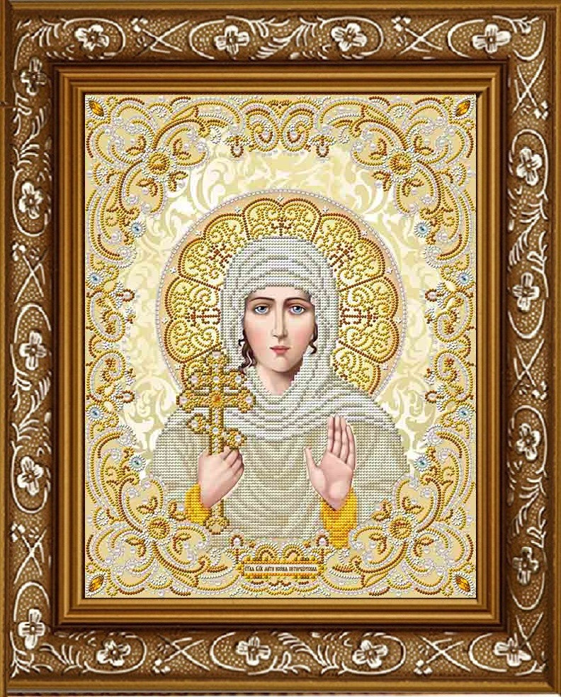 Рисунок на ткани для вышивки бисером ЖК-4010 Святая Анастасия в кристаллах и жемчуге 20х24см