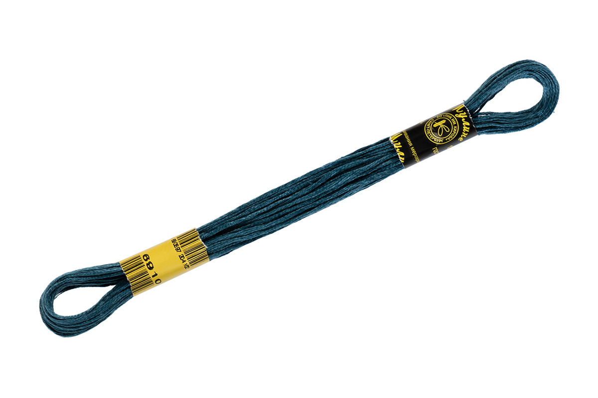 Нитки для вышивания " ПНК им. Кирова" мулине 100% мерсеризованный хлопок 8 м №6910 т. т. голубой