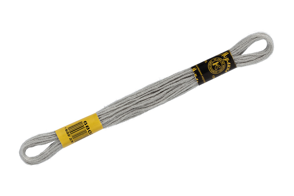Нитки для вышивания " ПНК им. Кирова" мулине 100% мерсеризованный хлопок 8 м №6804 серый