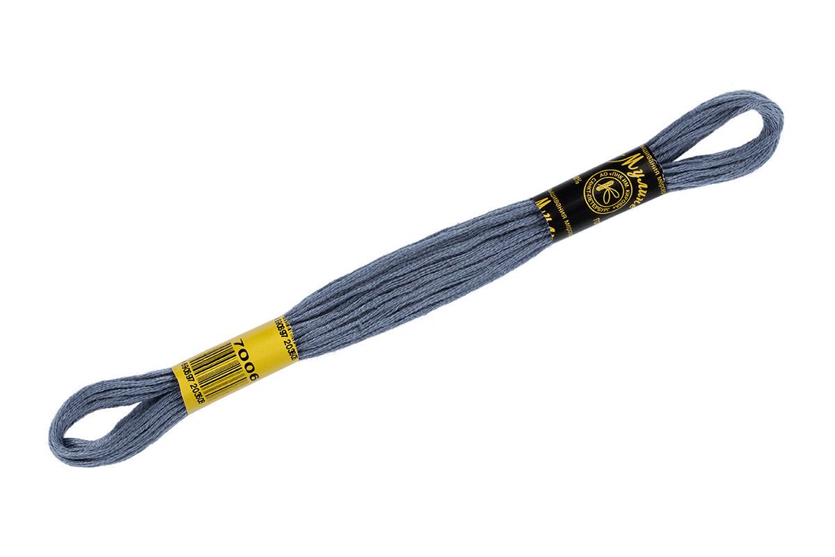 Нитки для вышивания " ПНК им. Кирова" мулине 100% мерсеризованный хлопок 8 м №7006 серый